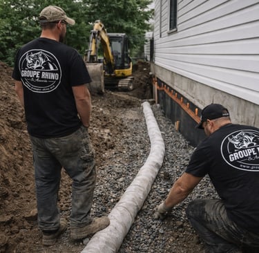 Chez Groupe Rhinos, nous sommes votre partenaire de confiance pour tous vos projets d'excavation et de terrassement au Québec. Spécialistes du drain français et des travaux de fondation, nous intervenons pour les maisons résidentielles et les chantiers commerciaux avec précision, efficacité et respect des normes